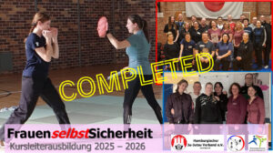 Vor wenigen Tagen endete mit dem Präsenzwochenende in der Sportschule Lindow in Brandenburg die aktuelle Kursleiterausbildung „FrauenselbstSicherheit“ erfolgreich. Dort schloss Fatma Keckstein vom HJJV gemeinsam mit den Brandenburger*innen den letzten Ausbildungsabschnitt ab.