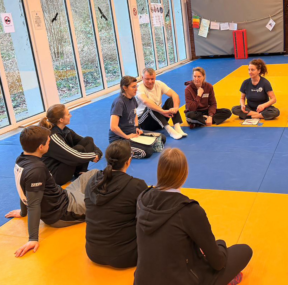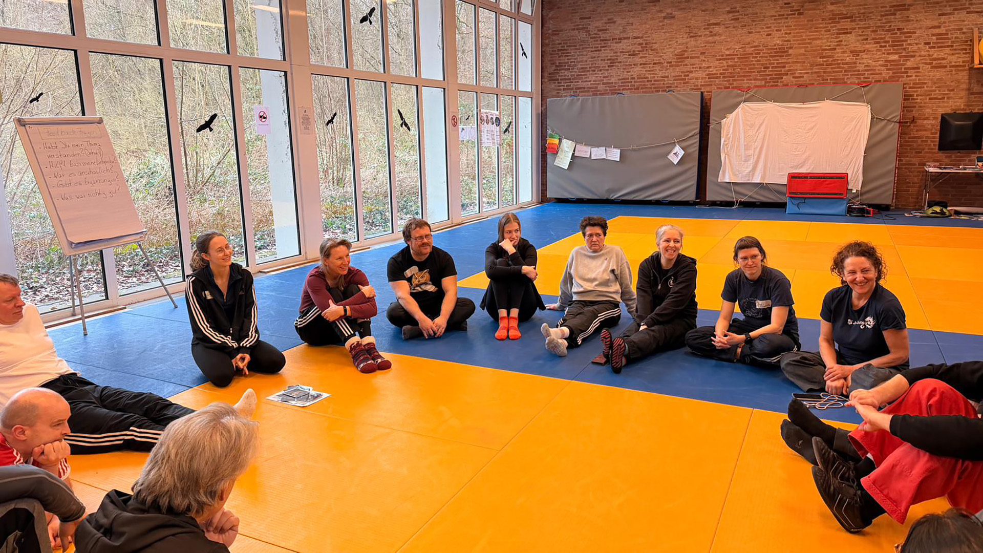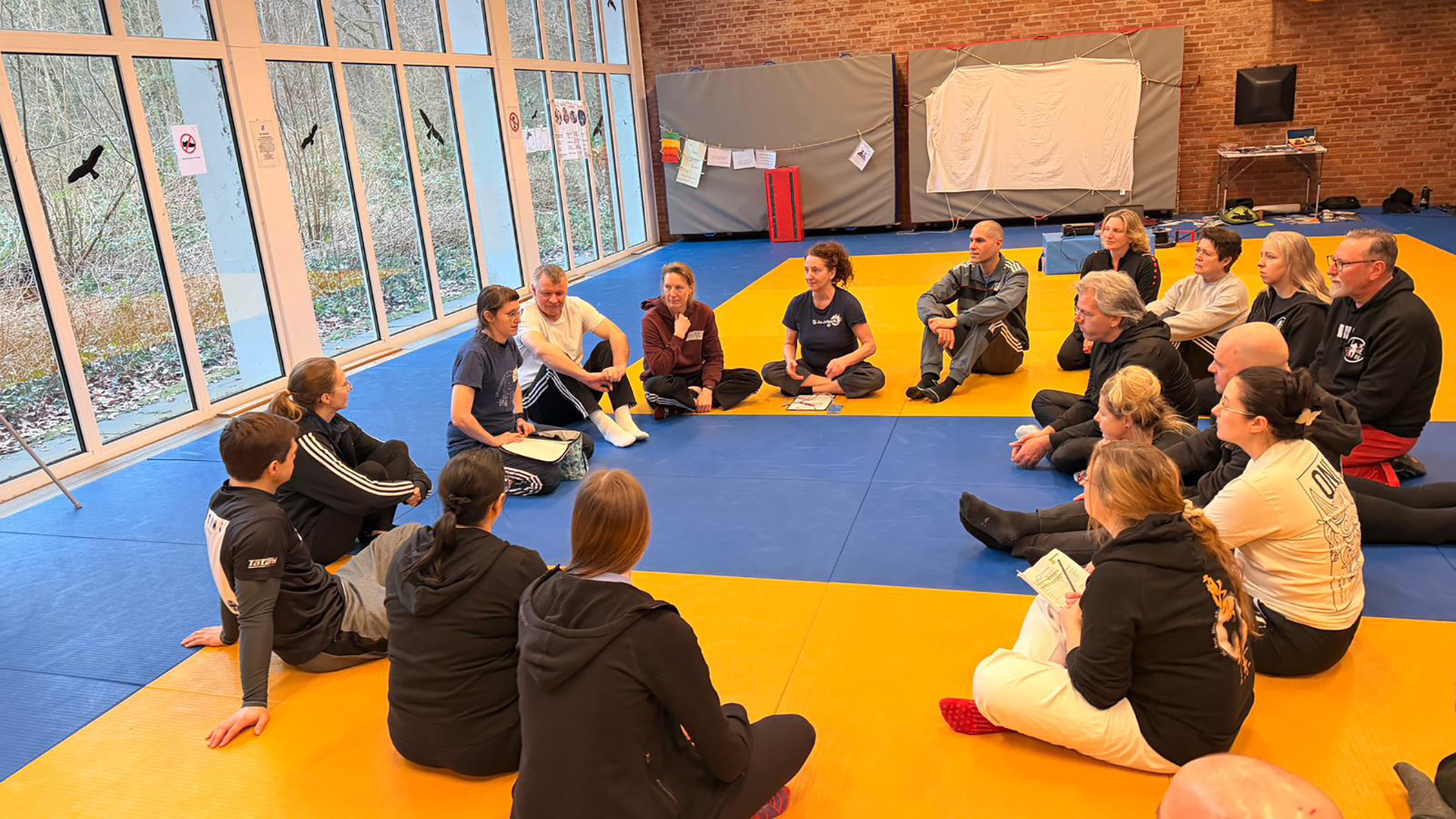 Los ging es bereits im November 2025 mit insgesamt sieben Zoom-Terminen à 90 Minuten. Dort standen Themen wie Formen der Gewalt, nonverbale Kommunikation und Kursorganisation auf dem Programm. Besonders schön: Diese Abende waren gleichzeitig auch als Fortbildung freigegeben und wurden zusätzlich von vielen Kursleiter*innen aus dem gesamten Bundesgebiet genutzt. So entstand von Anfang an ein reger und bereichernder Austausch.