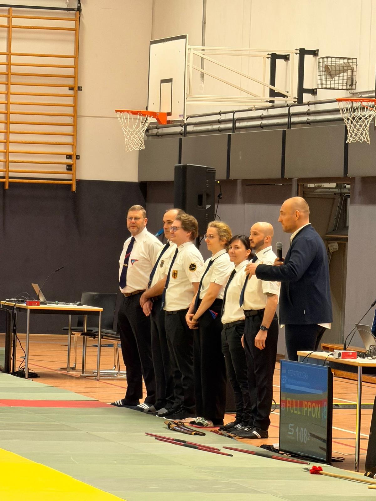 Das DJJV-Showteam des HNT (Harburger Turnerbund) eröffnete das Turnier mit einer beeindruckenden Showeinlage und sorgte von Beginn an für beste Stimmung in der Halle. Die Zuschauer wurden begeistert mitgenommen, bevor es im Anschluss mit den Fighting-Wettkämpfen losging.