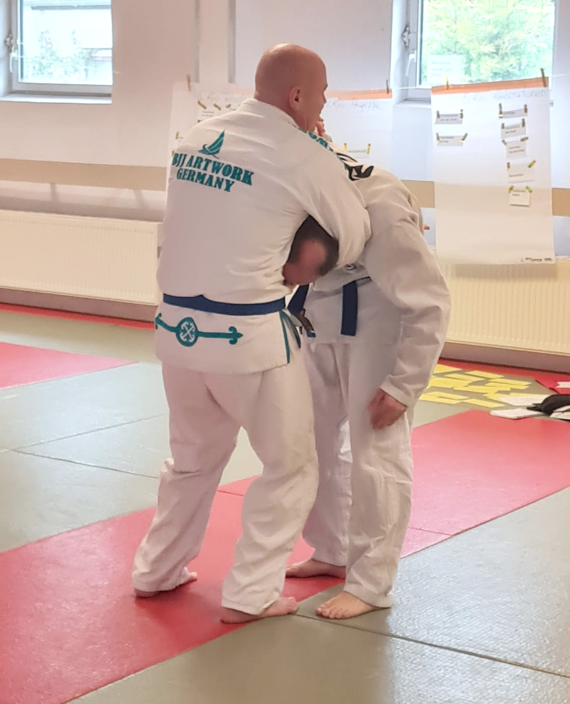 Den Abschluss bildete eine besonders spannende Aufgabe: Mit Techniken aus einer vorgegebenen Technikgruppe sollte auf einen angesagten „exotischen“ Angriff reagiert werden. Dazu gehörten beispielsweise Würgen am Boden in Bauchlage von der Kopfseite, Griff in die Haare von der Seite, Schubsen von hinten oder auch Waffenangriffe. Diese Übung forderte nicht nur technisches Können, sondern auch schnelles Umdenken und kreative Lösungen.