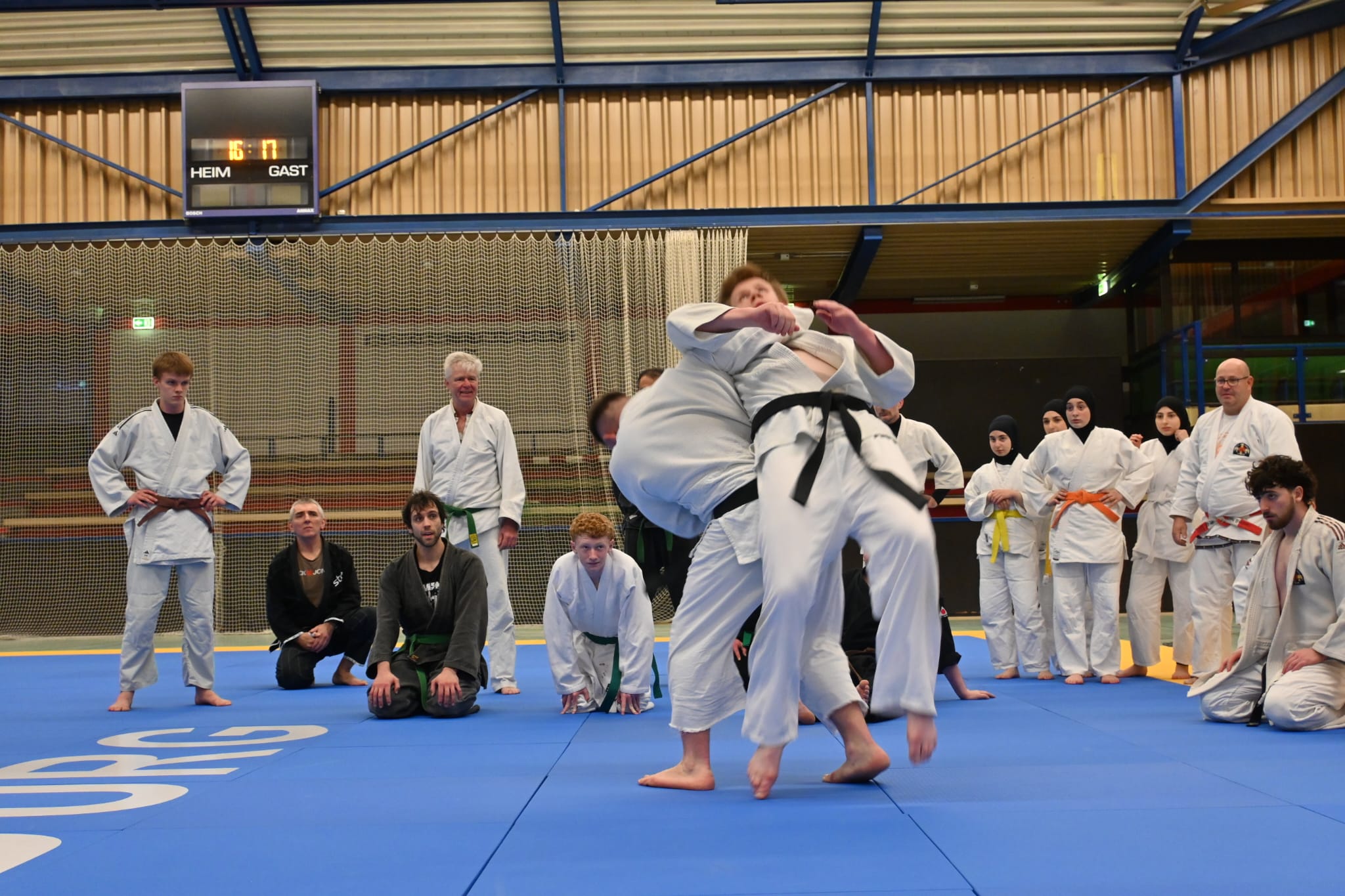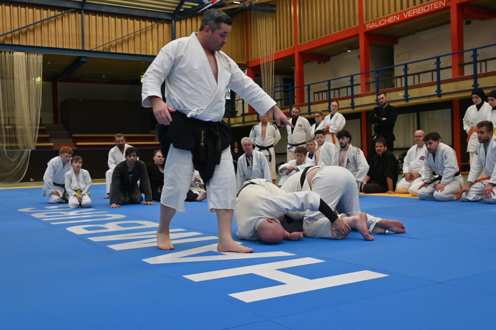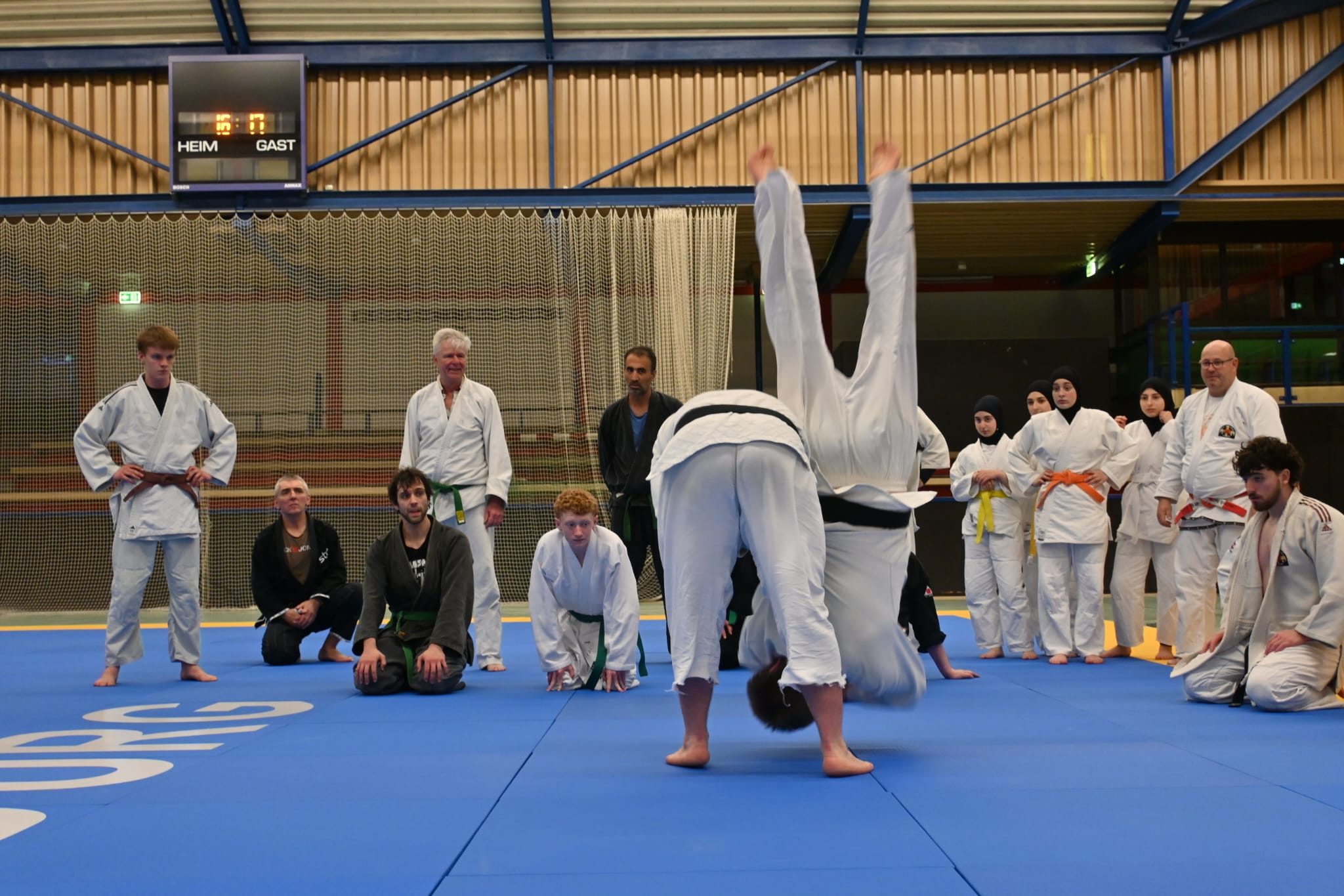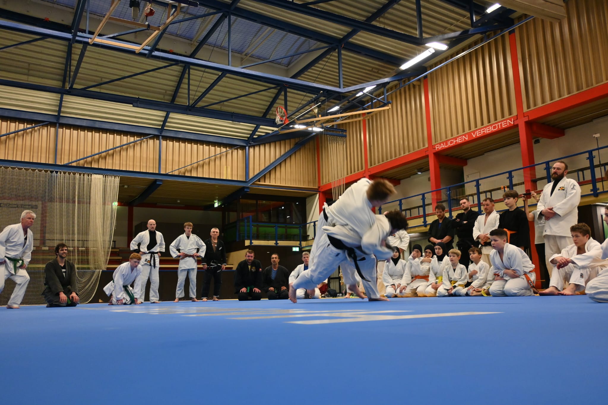 In der letzten Stunde wurde es dann noch einmal exotisch und den Teilnehmenden wurde etwas geboten, was in Deutschland sicherlich einzigartig ist. Bei etlichen am Mattenrand stand die Kinnlade offen, als sie „eingesprungene Außendrehwürfe mit wegsicheln“ oder „Hüftwürfe über den Rücken mit Salto“ sahen. Dabei war das Leuchten in den Augen nicht zu übersehen.